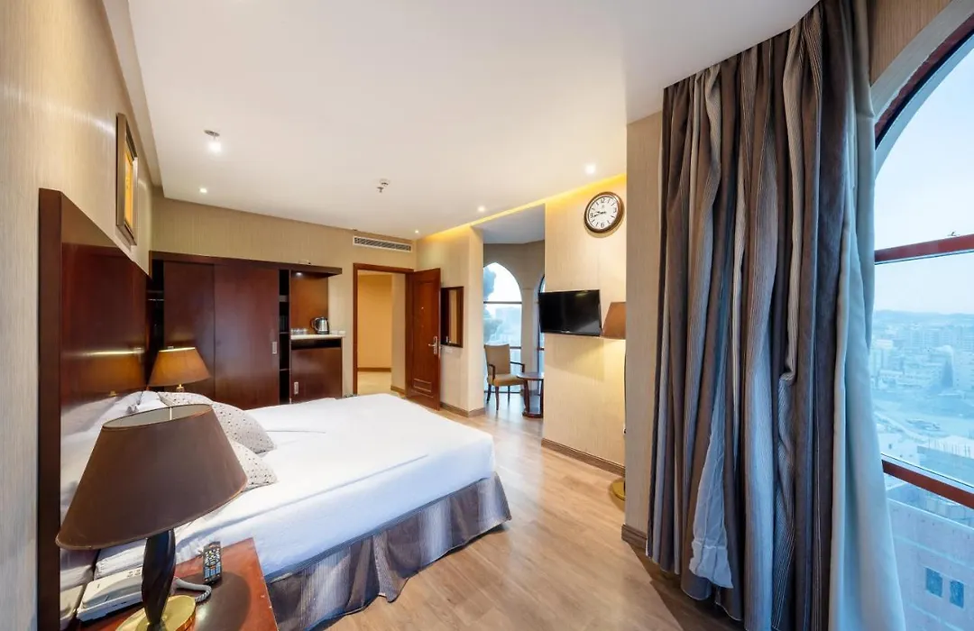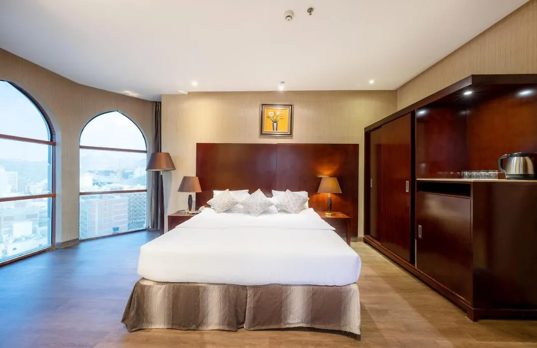 يضمّ فندق مكةفي الأرض المتميزة 1 900 غرفة ويقع على بعد نحو 10 دقائق بالسيارة عن مسجد التنعيم.